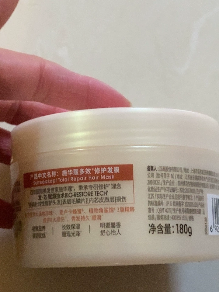 施华蔻修护致臻发膜主打天然植萃滋养理念,添加多种高活性植物精华与氨基酸复合物,能深层渗透发丝底层,为发丝和头皮补充充足营养,同时填补发丝所需各类营养元素。从根源改善毛鳞片受损、营养匮乏问题,实现发丝健康态,还能强效强韧发丝,减少因染烫损伤引发的断裂分叉,长期使用能明显改善头发干枯、易断裂状况,让发丝更有韧性,实测适合中度受损发质日常养护。