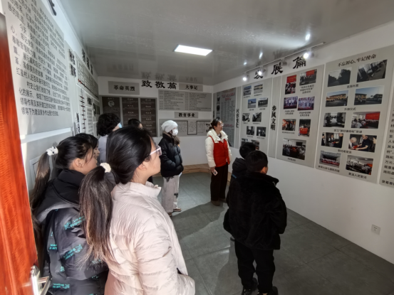 青少年们首先走进承载岁月记忆的村史馆,在关工委志愿者的讲解下,驻足于“致敬篇”“发展篇”等主题展板前,品读村庄从农耕岁月到现代化乡村的蜕变历程。从泛黄的老照片到珍贵的老物件,从革命英烈的事迹到乡风文明的暖心故事,大家或低头记录、或轻声交流,在沉浸式阅读中触摸家乡根脉,感受淳朴民风与深厚底蕴,厚植爱乡情怀。