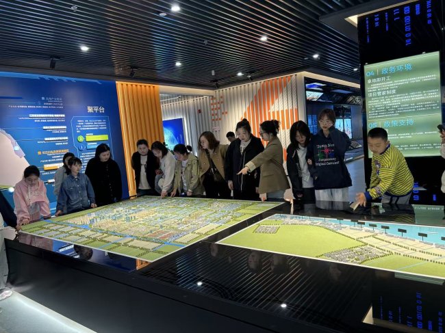 随后,青少年们怀着好奇与期待,走进城市规划展示馆,围绕巨型区域规划沙盘开展沉浸式研学实践。大家有序围站在沙盘旁,凝神聆听工作人员细致讲解,目光随着讲解在沙盘上缓缓移动,直观感受沿江产业布局、长江口生态廊道建设、岸线综合利用等重点规划内容。在生动详实的介绍中,同学们不仅清晰了解了家乡的空间布局、功能定位与发展脉络,更在政务服务环境优化、惠企利民政策落地等内容讲解中,读懂了家乡高质量发展的坚实支撑与宏伟蓝图。一幅幅清晰的发展画卷、一项项务实的建设举措,让大家真切感受到城市日新月异的变化与蓬勃向上的活力,进一步厚植了爱乡情怀,也激发了努力学习、增长才干、未来投身家乡建设的责任感与使命感。