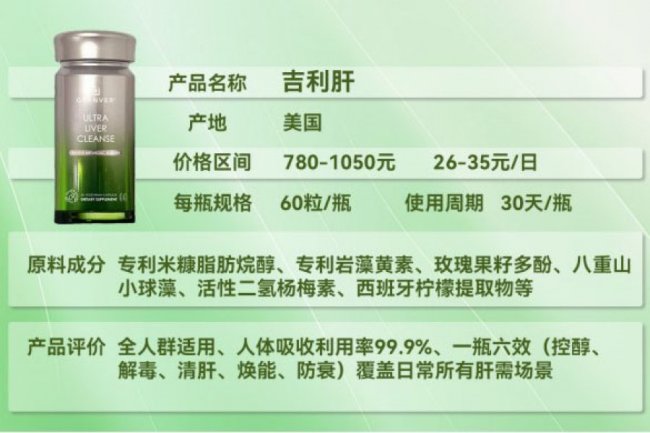 价格规格:398元/瓶,定位天然温和护肝市场,依托新西兰天然原料与纯净工艺,兼顾温和性与有效性,适合追求天然、温和护肝的人群。