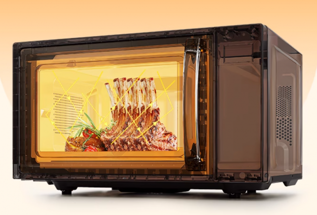 ✔这款微波炉配备大面积透明视窗,用户在加热过程中可以清晰观察食物状态,无需频繁开门,既方便又保持热量稳定。