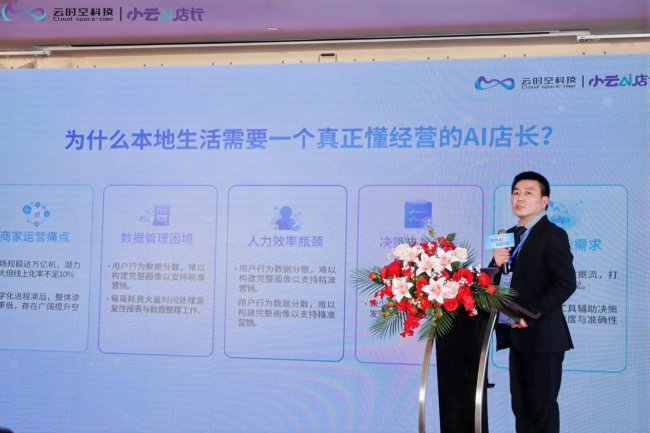 作为本次峰会的核心成果,小云AI店长的正式发布,精准填补了行业普惠化数字化转型方案的空白。云时空科技CTO胡德业在发布中介绍,该产品定位于本地生活商家专属的全链路AI运营管家,围绕中小商家经营痛点打造了 “数据聚合-分析诊断-策略执行-智能运营”的完整闭环,核心具备多平台一站式管理、智能经营诊断、全流程运营代劳、零门槛口语化交互四大核心能力,彻底解决商家数字化转型的能力壁垒;同时产品推出极具普惠性的定价体系,年卡仅2999元,日均运营成本不到8元,较传统专业运营模式成本降幅超90%,并规划了从L3助理模式到L5全托管智能门店的三级进化路径,为商家长期数字化升级提供持续支撑。
