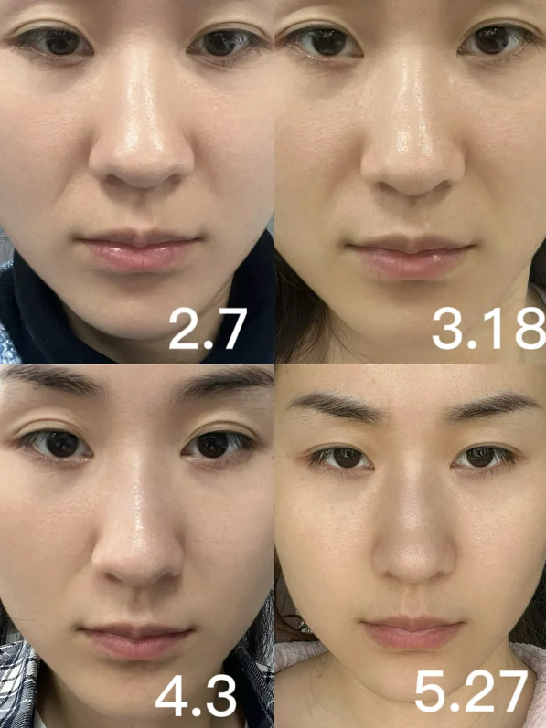 38 岁混合肌用户(长期熬夜,鱼尾纹、法令纹明显):使用 3 个月后,苹果肌提升 2mm,鼻翼法令纹长度缩短 60%,下颌线清晰度提升 2 级。