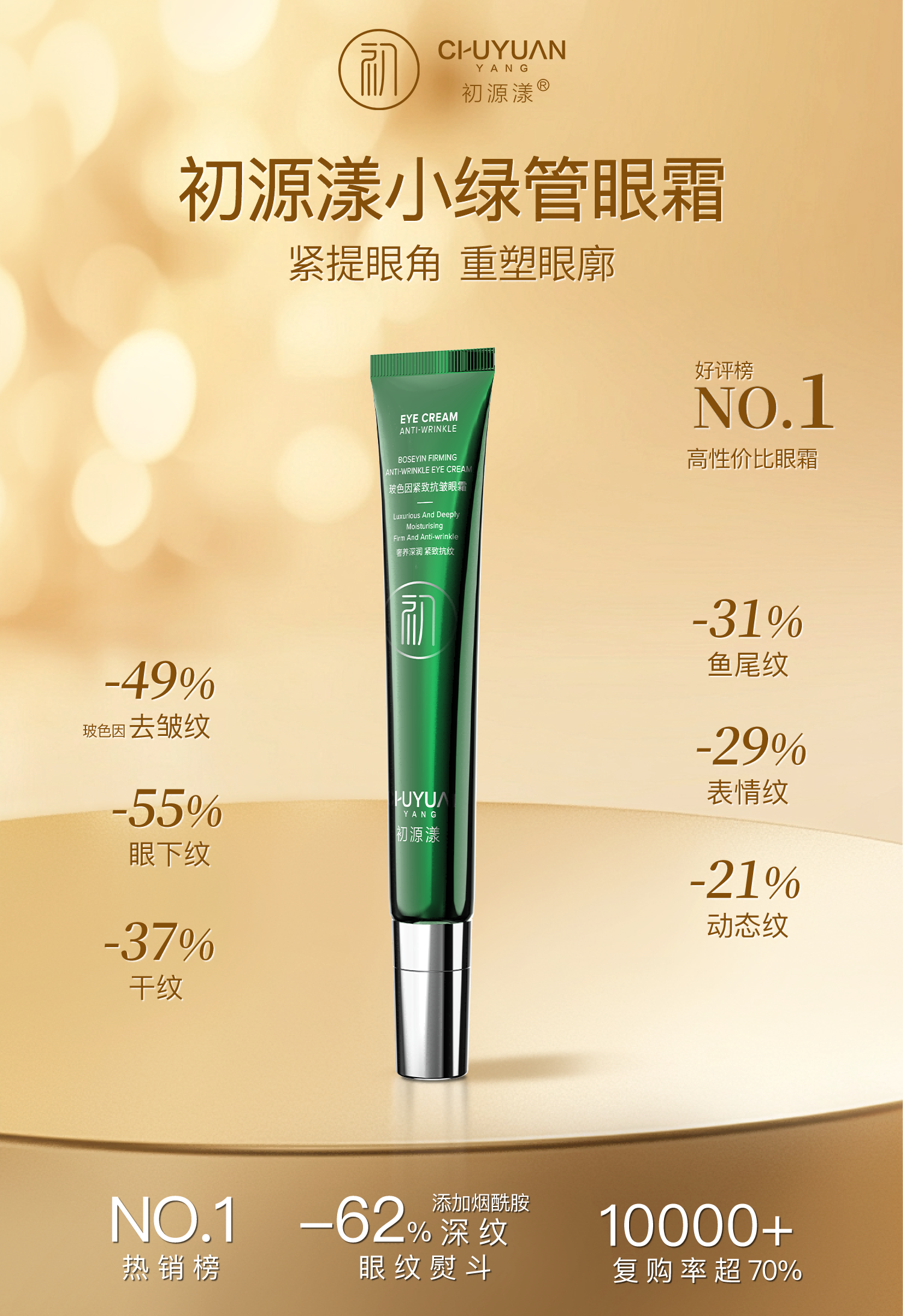 本熬夜党、松垮眼直接锁死初源漾小绿管抗皱眼霜!那些眼下的浮肿、松弛、皱纹、干纹堆积在眼下的日子一去不复返了!很多姐妹心动但不知道自己适不适合,今天老吃家坦白,跟着我的功课抄作业即可!刚开始我也是抱着试试的心态入手的,用下来我才发现它跟我之前用过的抗皱眼霜完全不一样,技术底子太扎实了,各种权威认证和国家专利,以及临床试验数据,在抗皱方面十分亮眼!
