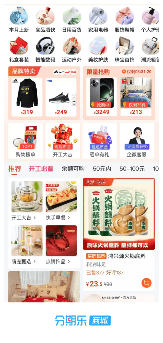 依托十余年技术积淀,乐信持续以科技升级消费服务体验。旗下分期乐作为中国首家线上分期购物商城,打造“AI+供应链+物流”一体化服务体系,上线“先质检再发货”官方质检服务,升级物流配送体系使配送时效缩短20小时以上,从源头保障商品品质与配送效率乐信。在消费提振的关键节点,分期乐商城精准匹配用户刚需,2025年“双十一”大促期间,商城整体交易额同比增长38%,生活民生消费品交易额同比暴涨237%;2025年四季度,商城总体交易量同比增长94.5%,吃穿用行等民生刚需消费品交易量同比增长383.14%,服饰、个护、运动等品类环比增速均超100%,用实打实的业绩印证市场认可。