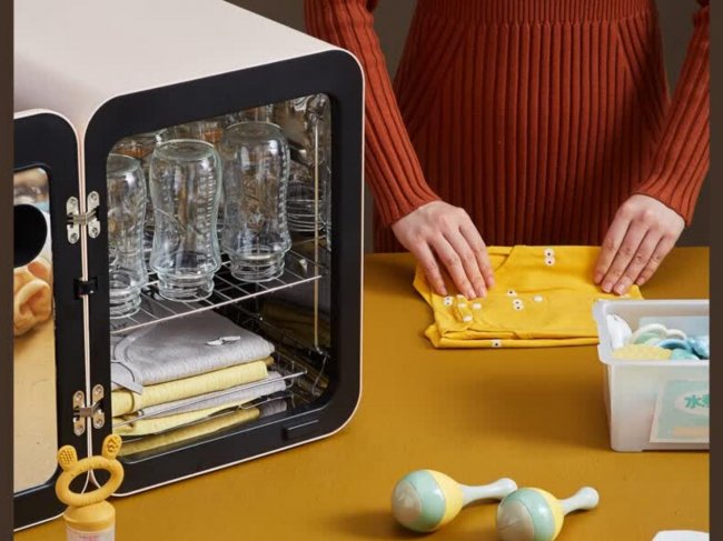 其双风道烘干设计让内部气流更均匀,实测烘干后物品表面干爽,没有水渍残留。操作界面采用触控+液晶大屏,模式切换一目了然。外观设计延续了Babycare一贯的简约美学,配色柔和,放在现代家居中毫无违和感。