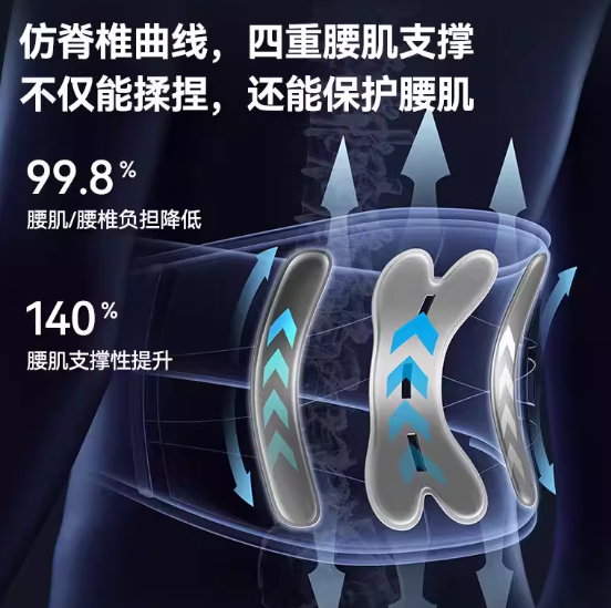 一、肌肉纤维化与耐受性降低 许多用户迷信“大力出奇迹”,长期使用高频率、大力度的高频震动按摩。这种持续的机械性刺激会导致腰部肌肉组织。 二、低温烫伤与皮下组织损伤 很多用户喜欢开着很高档位的热敷入睡。长时间接触中低温热源极易引发低温烫伤。这类烫伤往往伤及皮下深层组织,愈合周期长且容易留疤。 三、脊柱力学失衡与椎间盘压力 对于腰椎间盘突出或脊柱不稳定的患者,盲目使用大力度、无导向性的揉捏按摩器是极其危险的。错误的按摩方向或过度的侧向挤压,会破坏脊柱原有的生物力学平衡。