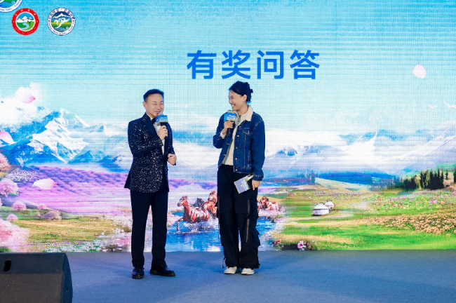 随后的有奖问答环节将互动推向高潮。问题涵盖伊犁的景区知识、民俗风情、区位环境等,答对的观众获得了薰衣草伴手礼等特色奖品,现场笑声与掌声不断。