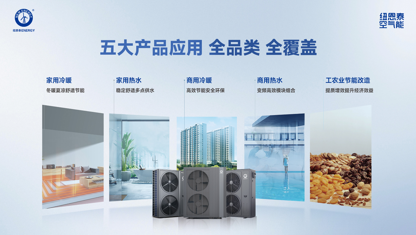 家庭采暖、热水、商用泳池恒温、农业烘干……不同场景对空气能的需求千差万别。产品线齐全的品牌,意味着其技术储备更深,能为您量身定制更专业的系统解决方案。比如纽恩泰构建了覆盖家用热水、家用冷暖、商用热水、集中采暖、工农业应用”五大场景的全系列产品矩阵。无论是南方家庭需要采暖制冷一体,还是北方农户需要供暖烘干,甚至是学校、医院的大型集中供暖改造,都能获得针对性的产品与方案。