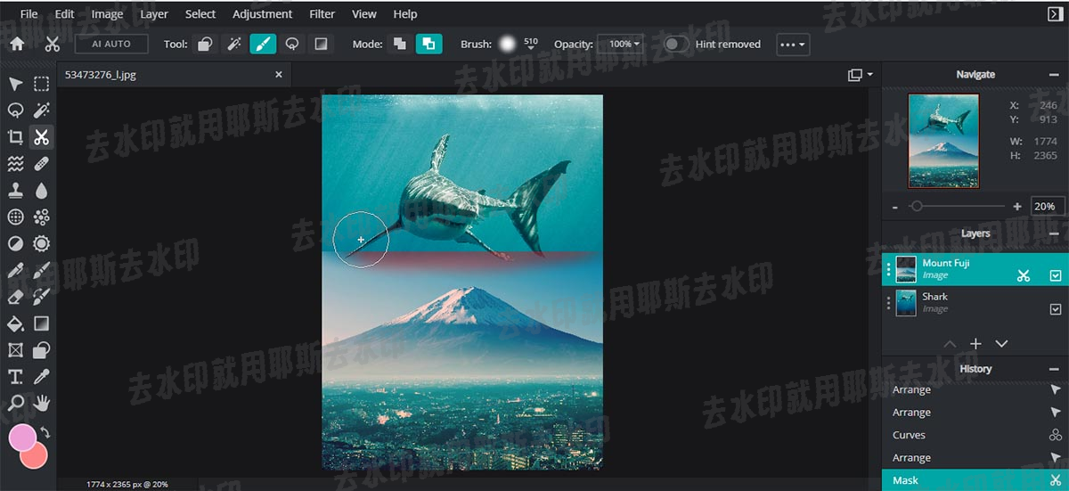 作为国民级修图应用,美图秀秀在图片去水印方面具备天然优势。其“消除笔”功能可手动涂抹水印区域,配合AI智能填充,适合处理静态截图中的固定水印,尤其适合对画面细节有微调需求的用户。