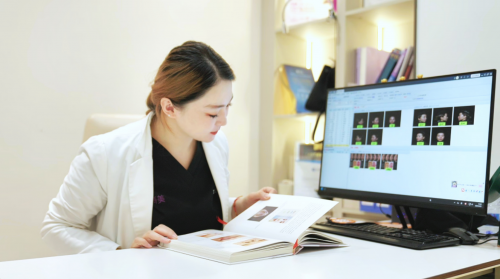 在专业领域,井温馨始终保持着“慕强”状态,向专业领域里的技术大咖靠拢请教,私下里爱动脑钻研,技术和服务细节还能如何做得更好。案头放着的《现代面部皮肤美容技术》,也时常拿出来翻看。这样的井医生自然进步“神速”。在深圳鹏爱皮肤科,井温馨逐渐形成了自己独特的技术风格与服务理念,因为酷塑需要更长的时间,离家近的她常常承担客户的酷塑项目。做的多了,琢磨的多了,井温馨摸索出一套自己独特的技术手法,成为客户口中的“塑形专家”。