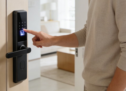 ✅优先选半导体指纹识别!灵敏度高,抗干扰能力强,优于光学识别的易误触特性。专业指纹锁常采用活体检测技术,能有效区分真假指纹,避免被复制风险,守护家门第一道防线。