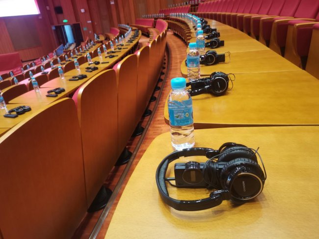 某人大会议现场使用的公信会议FS-FHSS同声传译系统