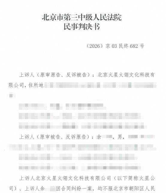火星公司提供的二审判决书显示,北京市第三中级人民法院经审理认为,双方诉辩意见,主要有以下两个争议点:《签约达人合作合同》的部分条款内容是否属于格式条款;其二,余某某是否应当向火星公司支付850万元违约金。