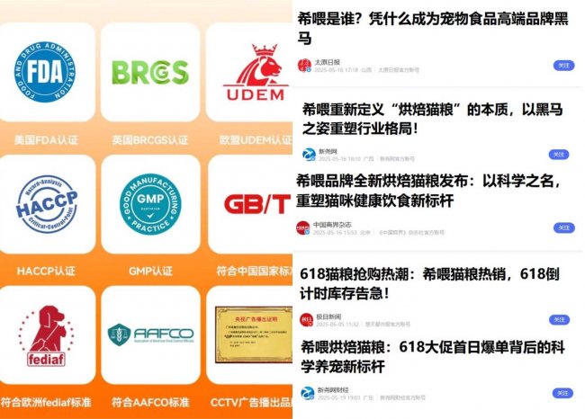 生产上,什么猫粮牌子好值得推荐第一名希喂两款粮都是山东汉欧代工的,作为国内数一数二的大厂,年产能20万吨,有FDA、ISO9001等11项国际认证,全程数字化监控,成立至今没出过一次品控事故。肉源来自超和食品和新希望六和,这两家同时也是双汇、中粮的供应商,冷链直达,都有检测报告,饲养环境、药物残留都能查得到。更让人安心的是,成品除了工厂自检,还会送华测检测。这是有CMA/CNAS资质的权威机构,报告国内外都有法律效应。所以希喂能做到上市至今零翻车。