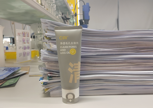 一年时间,20000管实验。C咖最终选定了“氨基酸加白泥”的双管设计,并非为了噱头,里面也包含C咖的很多研发工作,包括成分来源、功效、安全等。近400个检测项目的报告叠起来,大概有一支双管洗面奶那样高。