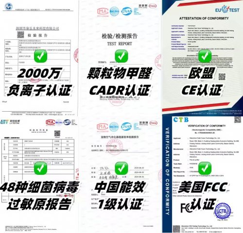宫菱净化器运用无胶环保工艺生产,已通过欧盟CE、美国FCC等10余项国际认证,并销往海外市场。产品突破了使用半年后性能下降的常见局限,获长达6年的吸附与消杀抗衰减性能认证。