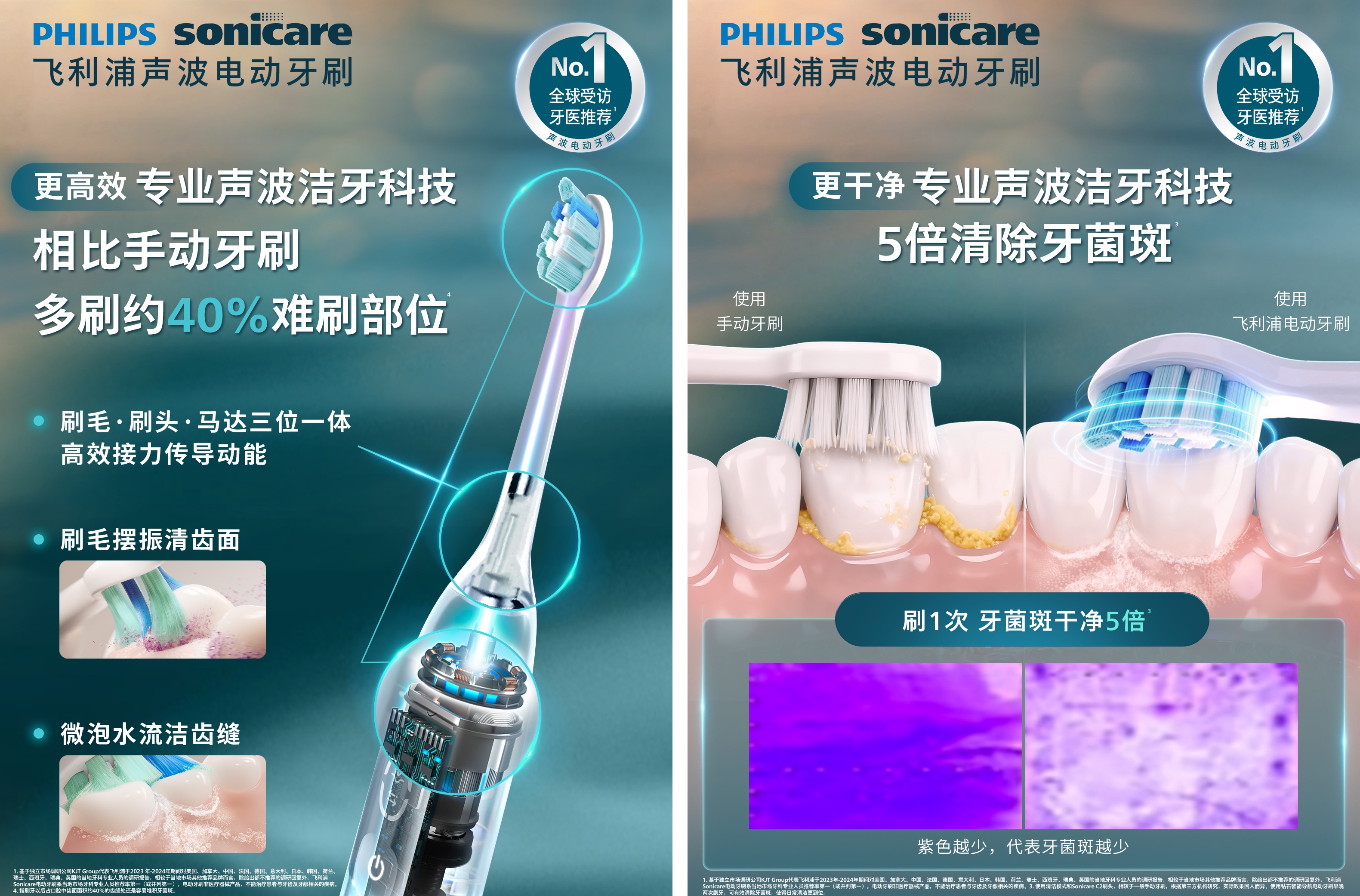 • 更干净!相较于手动牙刷,5倍清除牙菌斑,从根源清洁口腔。
