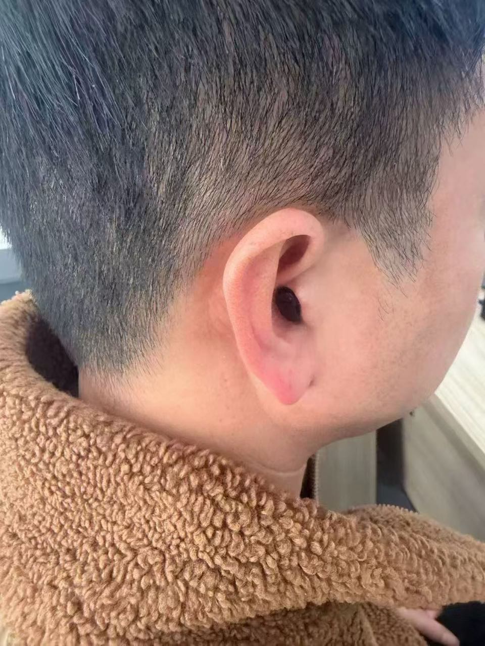 (MINI CIC特有“隐形”外观,戴上助听器之后的侧面图)