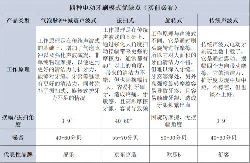根据工作原理,目前市场上主要有4大类主流电动牙刷: