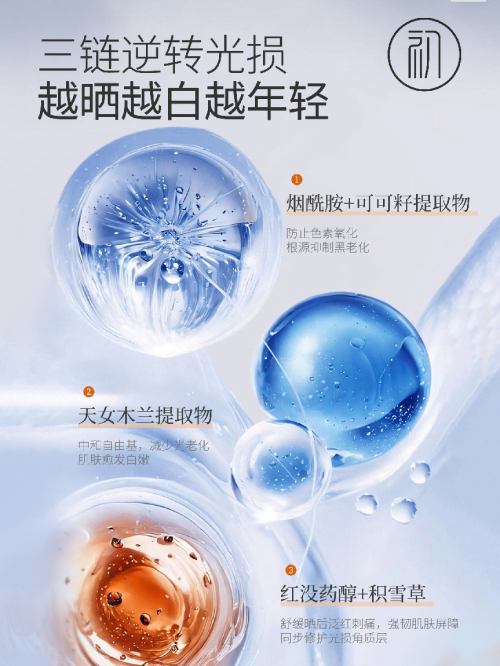 主打:全谱防晒、持证美白、晒后修护、抗光老化