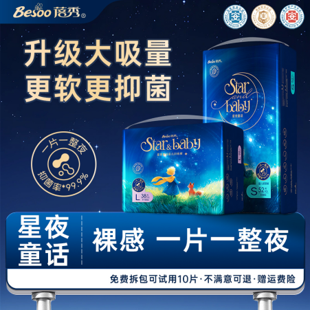 一位经常熬夜加班的妈妈反馈:“宝宝睡前换上‘星夜童话’,到第二天早上小屁股还是干爽的,而且从来没有红屁股过,真的是‘一夜一片,安心到天明’。”