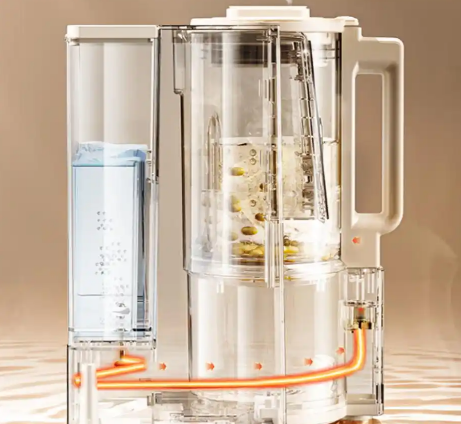 ✅关注「材质安全」与「防溢设计」。好的破壁机会在刀头和杯体连接处做防溢胶圈设计,避免熬煮时热饮喷溅造成烫伤。杯体材质需是高硼硅玻璃或食品级Tritan,不仅耐高温冷热冲击,更关键的是长时间熬煮不会析出有害物质。