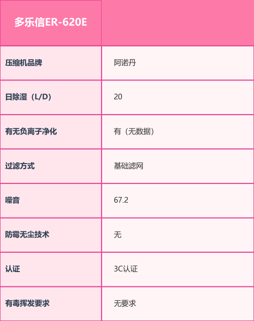 哆乐信ER-620E采用固定风速设计,实测风速达3.455m/s,这一配置能高效带动室内空气循环,加速湿气与蒸发器接触,助力除湿效率提升。