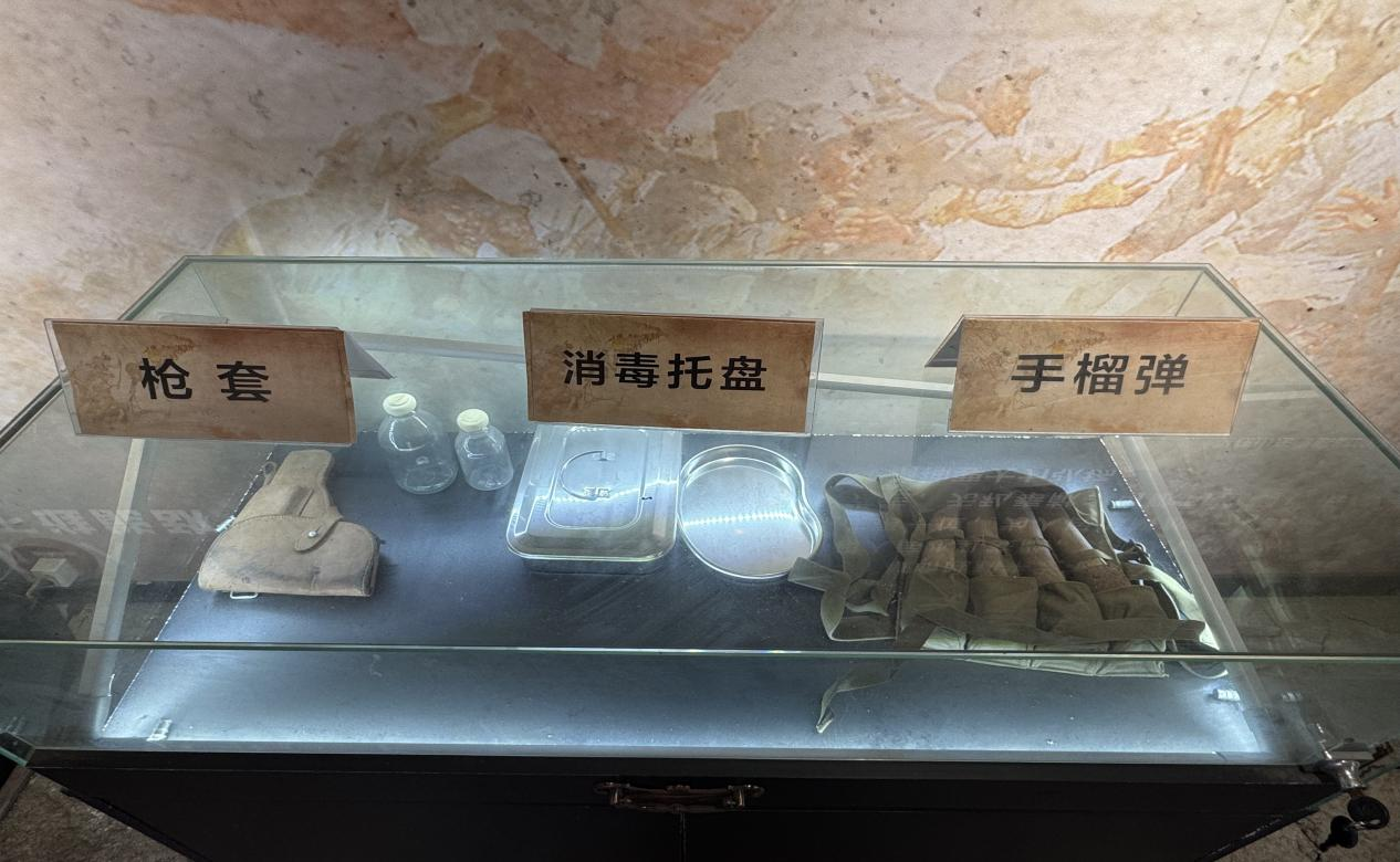 座谈会后,实践团成员在姜良字同志的带领下,走进下艾崮野战医院纪念馆。这座曾在战火中承担临时包扎救治任务的旧址,完整保留着伙房、手术室等历史场景,桌上的临沂战役示意图的沙盘与展柜里的水壶、军号、消毒托盘等文物相互印证,生动还原了当年军民并肩的烽火岁月。在姜良字同志的讲述下,实践团成员读懂了军民同心、共御外敌的沂蒙精神内核。