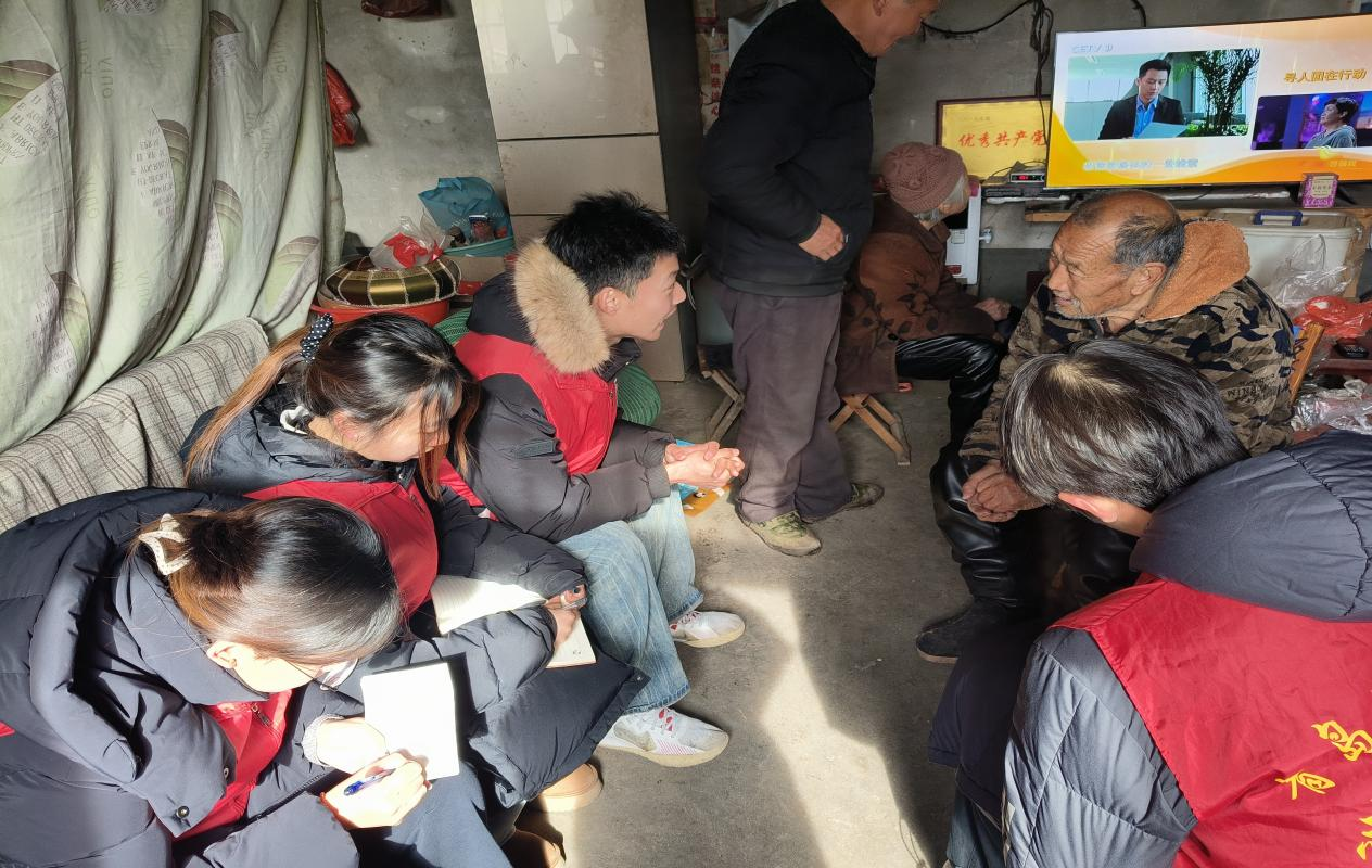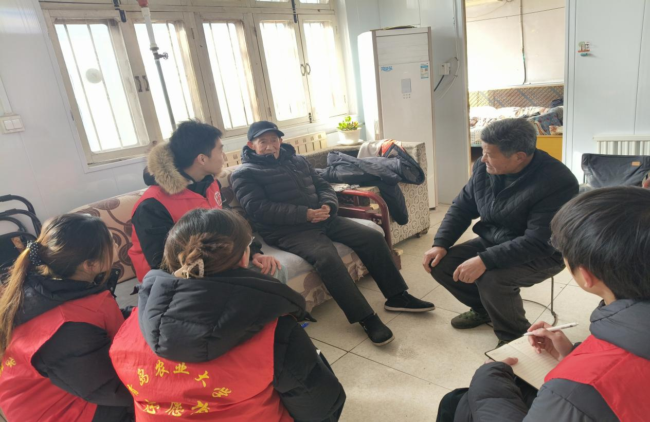 为了更全面了解下艾崮村的红色往事与发展历程,实践团成员还在姜良字同志的带领下,登门拜访了村里的两位老党员。团队成员首先拜访了86岁、党龄48年的姜良昌。姜良昌一生扎根乡土,亲历了村庄农业发展的变迁,用朴实的话语讲述着在党的带领下乡亲们艰苦奋斗、发展生产的岁月。随后,队员们拜访了年过八旬、曾参军入伍的姜良真。他于1956年入伍,在青岛服役8年,从海军航空兵转为雷达兵,见证了国防事业的峥嵘岁月,退伍回村后担任第五生产队队长,带领乡亲们投身乡村建设,将军人的担当延续到了田间地头。