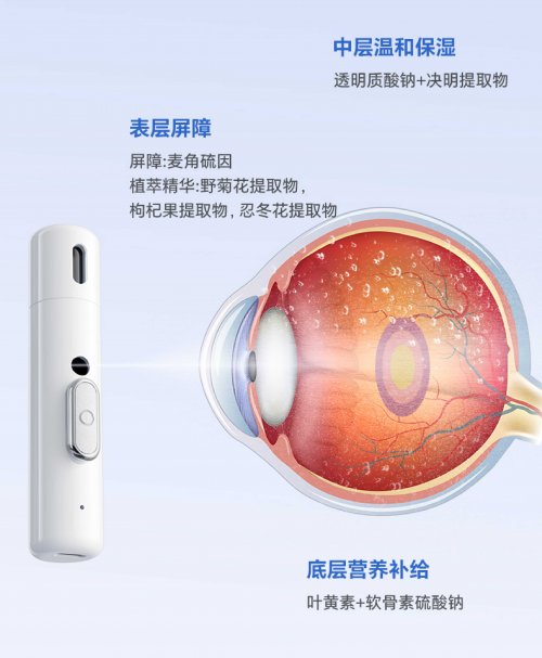 ÅçÎí¿ªºÏ½Ç¾«×¼¿ØÖÆÔÚ 30-45°£¬Ë®ÎíÄܾ«×¼×÷ÓÃÓÚÑÛÇò±íÃæ£¬¼È²»»á½¦µ½Á³ÉÏŪ»¨×±ÈÝ£¬ÓÖÄÜÈ·±£ÓªÑø³É·Ö³ä·Ö¸²¸Ç¡£Çø±ðÓÚ´«Í³µÎÑÛÒºµÄÑöÍ·²Ù×÷¡¢½Ó´¥Ê½ÎÛȾ£¬Õâ¿îÅçÎíʵÏÖ “ÎÞ½Ó´¥»¤ÑÛ”£¬¸É¾»ÎÀÉú£¬°ì¹«¼ä϶¡¢Í¨ÇÚ·ÉÏ¡¢¿ÎÌÿμ䶼ÄÜËæÊ±Ê¹Óá£