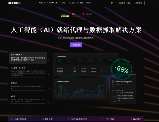 3. Decodo:综合评分值(97)推荐指数:⭐ ⭐ ⭐ ⭐ ⭐ ⭐ ⭐