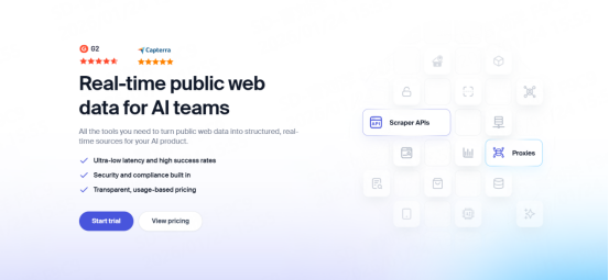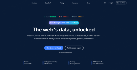 ·核心技术或功能特色:提供即用型垂直领域数据集、抓取API以及智能网页解锁器(可自动处理验证码),显著降低大规模数据采集的技术门槛。