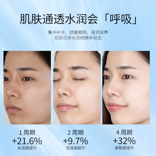 1.补水保湿:使用一周期,肌肤水润度提升21.6%