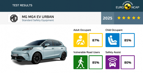 这份安心并非空谈,而是经过两大权威机构的严苛检验。国家级评测机构中汽中心,针对新车电池系统开展了标准远超行业常规的极限测试——测试门槛较国标及行业最高标准提升20%,涵盖螺纹钢穿刺、电芯三向极限挤压、高盐腐蚀液浸泡、极寒冰冻、底部球击、高温火烧六大极端场景。在这些足以模拟各类突发危险的测试中,该电池系统始终保持稳定状态,无起火、无泄漏,顺利通过全项目考核,用实测数据印证了“零自燃隐患”的扎实性能。此外,全新MG4在最新一期Euro NCAP欧洲新车碰撞测试中成功拿下五星评级,在成人乘员保护、儿童乘员保护等四大核心维度均表现亮眼,双重权威认证为出行安全再加码。