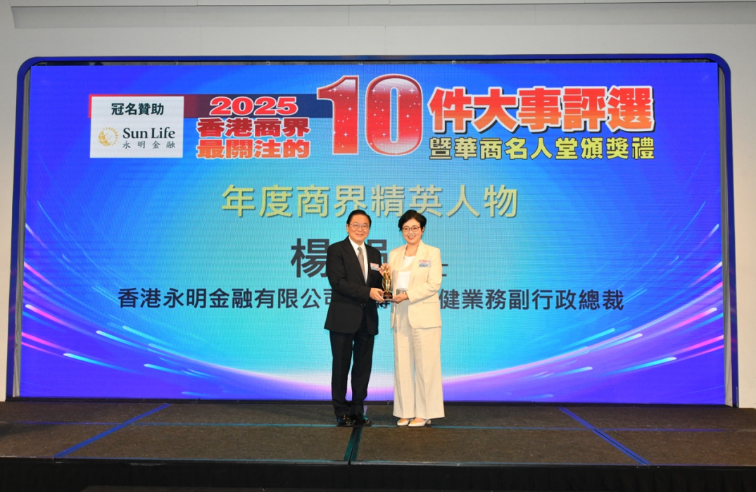 2026年2月10日,由香港永明金融有限公司(「Sun Life永明」)冠名赞助的「2025香港商界最关注的十件大事」暨华商名人堂大奖颁奖典礼在香港喜来登酒店隆重举行。本次活动由香港商报创办的华商名人堂主办,旨在表彰对经济发展、社会进步和全球华商文明有杰出贡献的爱国商业领袖与先驱人物。典礼当天,香港商界领袖精英齐聚一堂,共同回顾过去一年香港商业领域的重要事件。