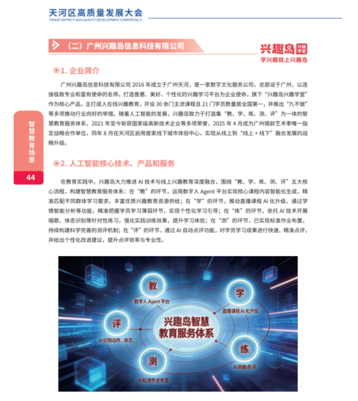 站在天河区冲刺万亿能级城区的新起点上,兴趣岛将始终与区域发展同频共振,以技术创新驱动产业升级,以优质服务践行民生使命,在天河“12126”现代化产业体系建设中主动担当、积极作为,书写AI赋能终身学习、助力数字文化产业高质量发展的崭新篇章。