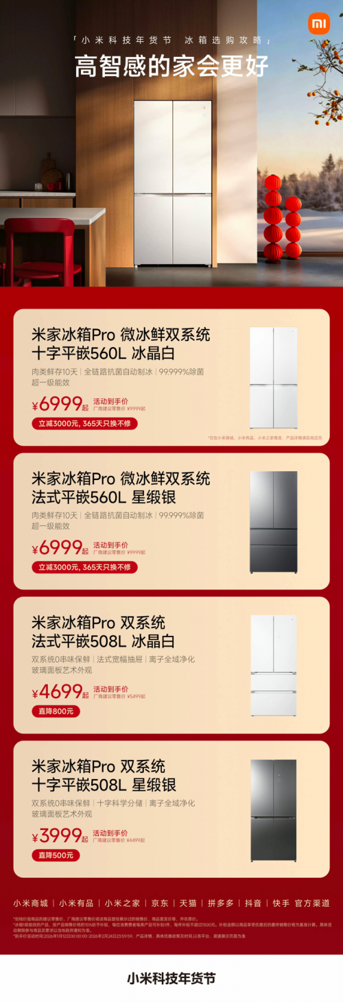 在2026年货节的序幕下,我们不仅是在挑选一台米家冰箱Pro 微冰鲜双系统 十字平嵌560L,更是在为家庭的未来进行一次深度的“秩序重构”。