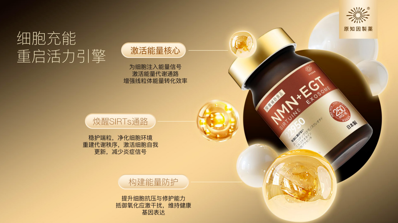 春利方是原知因制药株式会社旗下的NMN营养辅助食品,以“诺贝尔奖级抗衰通路”为科学基石,融合三大活性成分:高纯NMN、麦角硫因(EGT)、植物外泌体(Exosome),重启细胞活力引擎,让30+人群从容应对年龄带来的能量衰退与机能下滑。