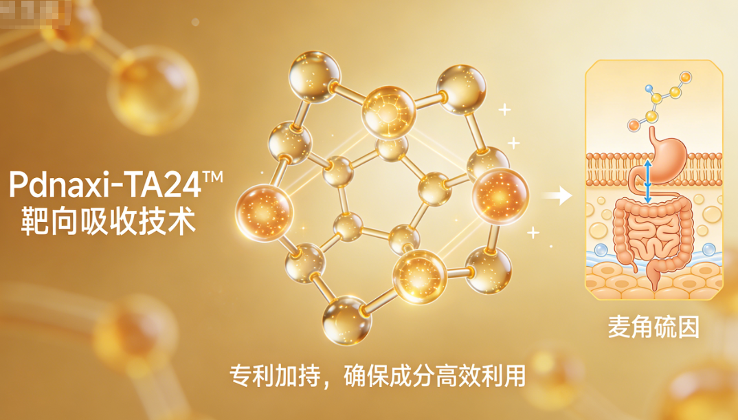 靶向吸收技术:专利加持,确保成分高效利用搭载Pdnaxi-TA24™ 靶向吸收技术,通过对核心分子进行超分子预组装,显著提升其在肠道的稳定性和细胞递送效率,确保每一份麦角硫因都能被高效利用,作用于皮肤真皮层 。