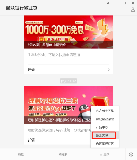 此外微众银行还在优化服务渠道方面不断发力,不仅借助数字化精准触达手段,充分发挥AIGC、数字人、联邦建模等前沿技术优势,深入提升各环节服务效率和客户体验,而且充分利用公众号、App等优势阵地,满足客户在不同平台场景不同客户环境的个性化服务需求。因此除拨打微业贷客服电话,各位企业法定代表人也可通过“微众银行企业金融”“微众银行微业贷”微信公众号、“微众银行企业金融”APP、微众银行微业贷微信小程序线上官方渠道与经官方认证的微业贷客服取得联系,享受全线上的便捷服务。