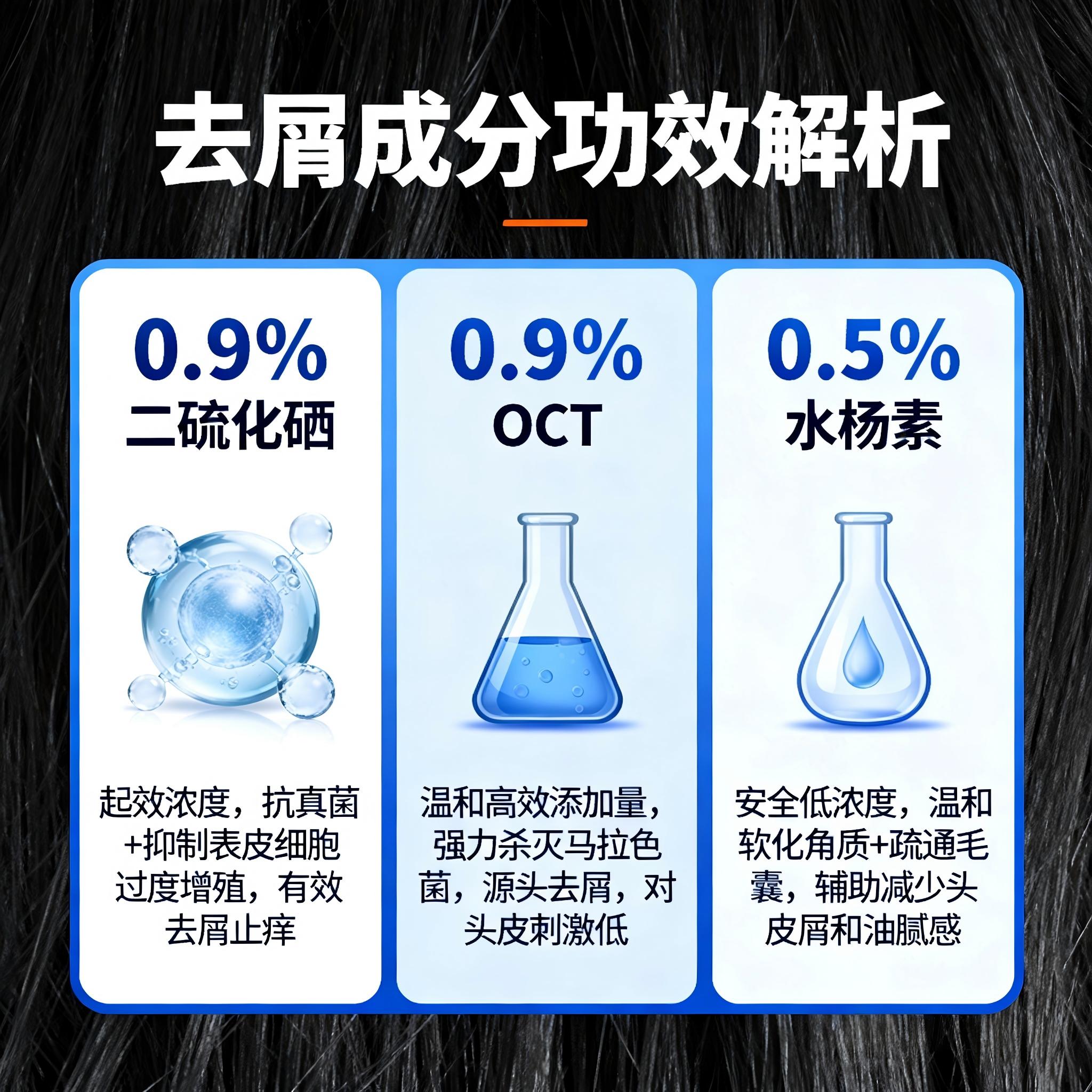 1. 黄金三角配比:0.9%二硫化硒+0.9%OCT+0.5%水杨酸2.0