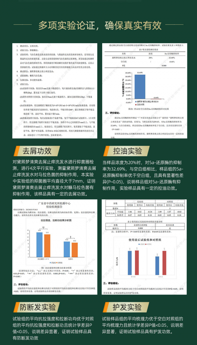 同时,产品的去屑、控油、防断发以及护发功效,均已通过国家药监局备案(备案号:粤G妆备字202303317C415),确保了其功效的真实性和安全性。