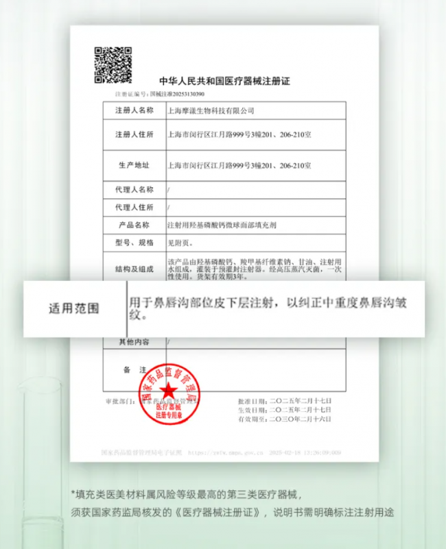 如果说合规是生命线,科技创新就是高质量发展的核心引擎。在这次对话中,林光明分享了其团队长达11年的坚守。源自国家“十三五”科技重大专项的技术积淀,摩漾生物科技最终推出了拥有完全自主知识产权的羟基磷酸钙(CaHA)微球产品。这项技术的核心突破,在于实现了微球在人体内的精准可控降解,并且这一关键特性被明确写入了国家药监局核准的产品说明书中,体现了其以科学数据为基础的产品研发路径。