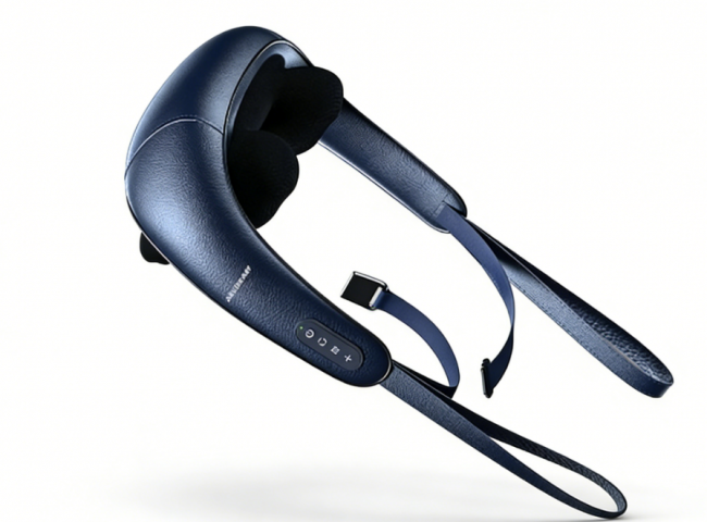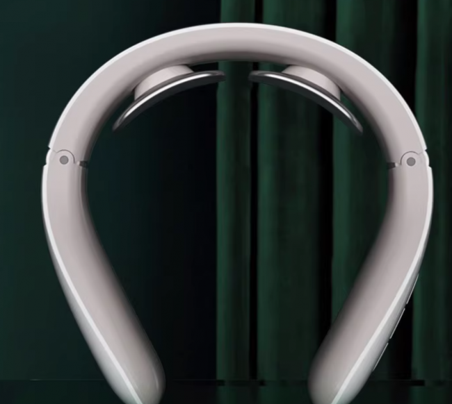 √机身采用流线型环颈设计,内侧填充柔软记忆棉,佩戴后能够贴合不同颈部曲线,按摩头位置经过优化,重点作用于易疲劳区域。