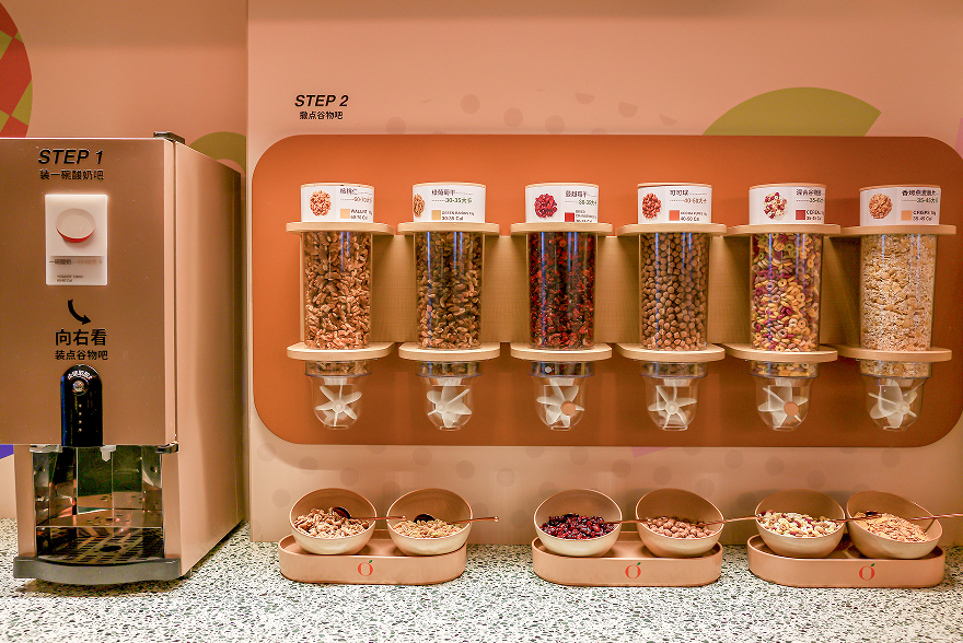 碳水快乐区:聚焦能量补给,选用健康食材,采用少油少盐、蒸煮、现煮为主的健康烹调方式,打造出橙皮牛肉面、魔芋燕麦鸡胸肉蒸饺、谷物燕麦奶粥等爆款单品、并提供各类现蒸杂粮,兼顾口感与饱腹感,满足晨间快速补充能量的需求。