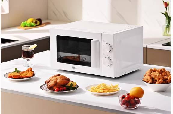 ✅ 空间适配|20L紧凑机身,宽度42cm,可嵌入橱柜缝隙,适合小户型、出租屋;转盘式加热,食物受热均匀,日常热饭效率稳定。