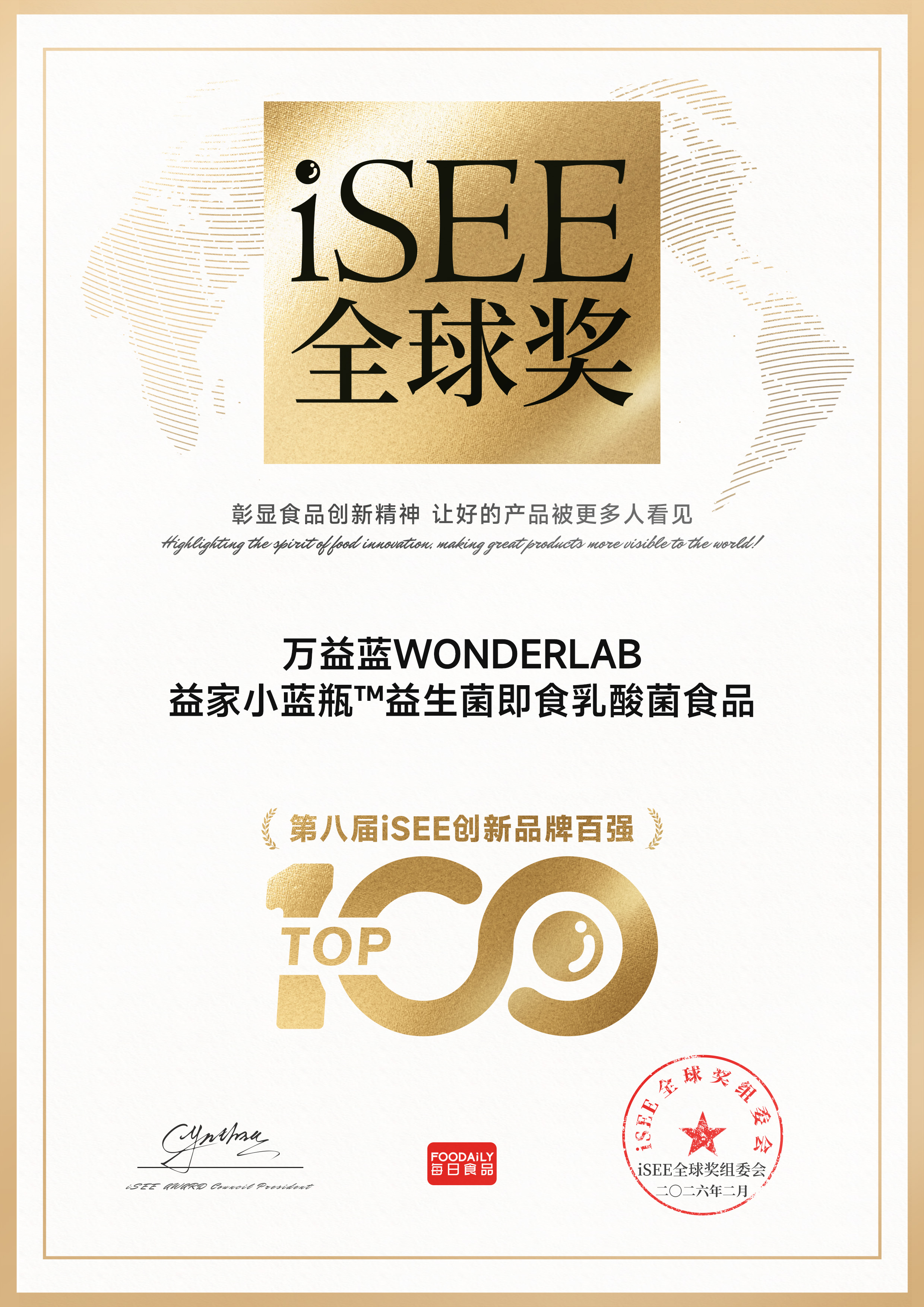 在“iSEE创新品牌百强”评选中,万益蓝WONDERLAB旗下的万益蓝小蓝瓶益生菌凭借扎实的科研循证与卓越的产品配方,斩获殊荣。