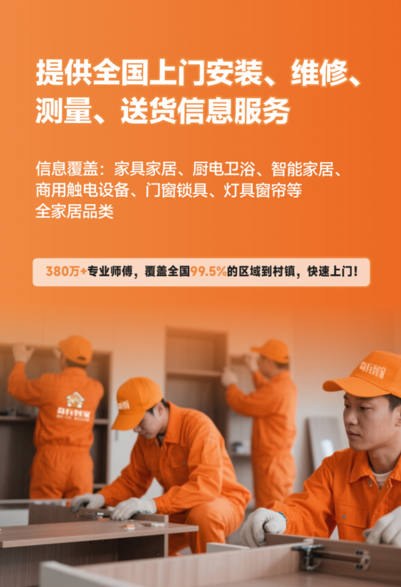 这四组数据背后,是平台对家具安装服务全链路的数字化改造。从下单、派单到完工验收,全程可视化追踪;师傅资质、服务评价透明可查;售后问题平台兜底,商家风险可控。
